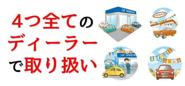 トヨタ車を扱うディーラーは現在4つありますが、プリウスはすべてのディーラーで取り扱っています。